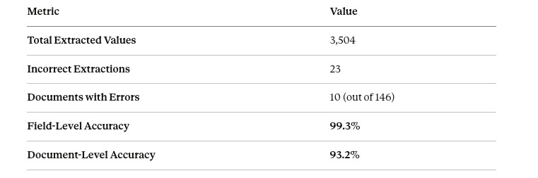 The ultimate measure of an extraction system is accuracy. Here’s how our Agentic IDP performs on real-world logistics invoices.